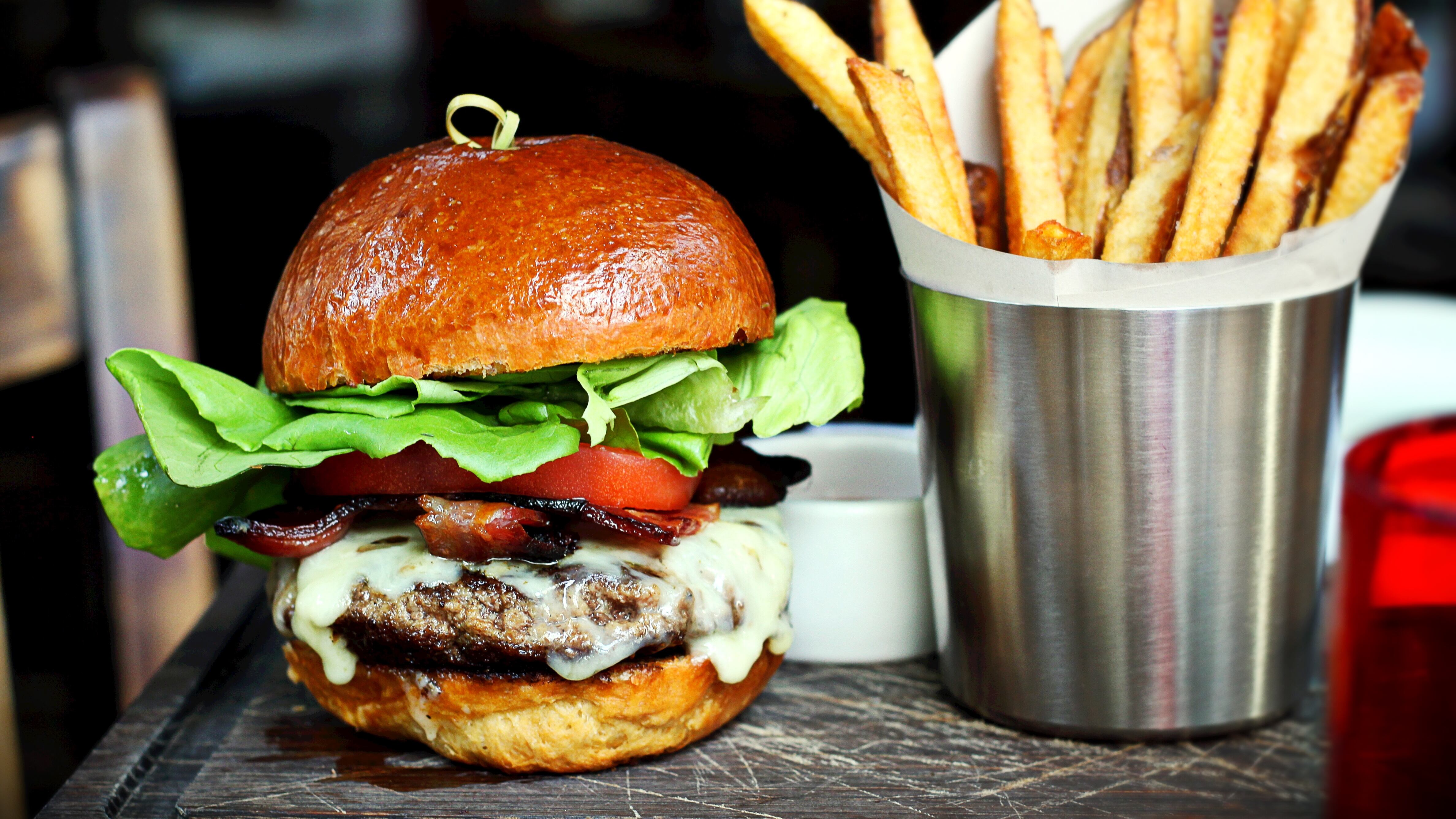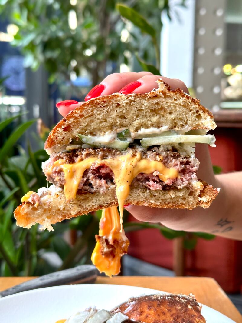 - October: Brunch Burger filled with a fried egg, bacon, cheddar hollandaise, smoked chili aioli served on homemade english muffin