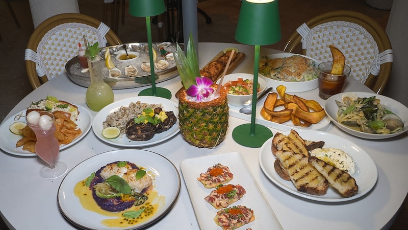 Full table spread Enjoy fresh cocktails, delicious bites, and oceanfront views at Oceanwalk by Bennys in Lake Worth Beach (WFLX)
