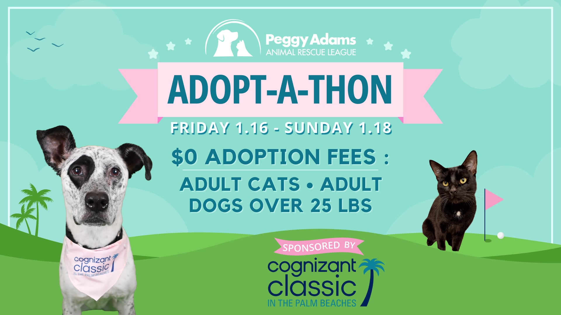 The Cognizant Classic in The Palm Beaches is teaming up again with Peggy Adams Animal Rescue League to waive all adoption fees for large adult dogs and adult cats from Friday, January 16 through Sunday, January 18. That means you can take home a new best friend for free!